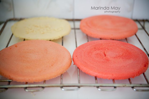 We thought it perfect for a Valentines Day celebration, whilst we opted for shades of pink, you might also try the same with shades of red or purple ombre. Marinda lovingly shared her mothers’ microwave cake recipe with us. This cake could also easily be made with a cake box mix should you want. No need to go entirely homemade if you don’t have the time.